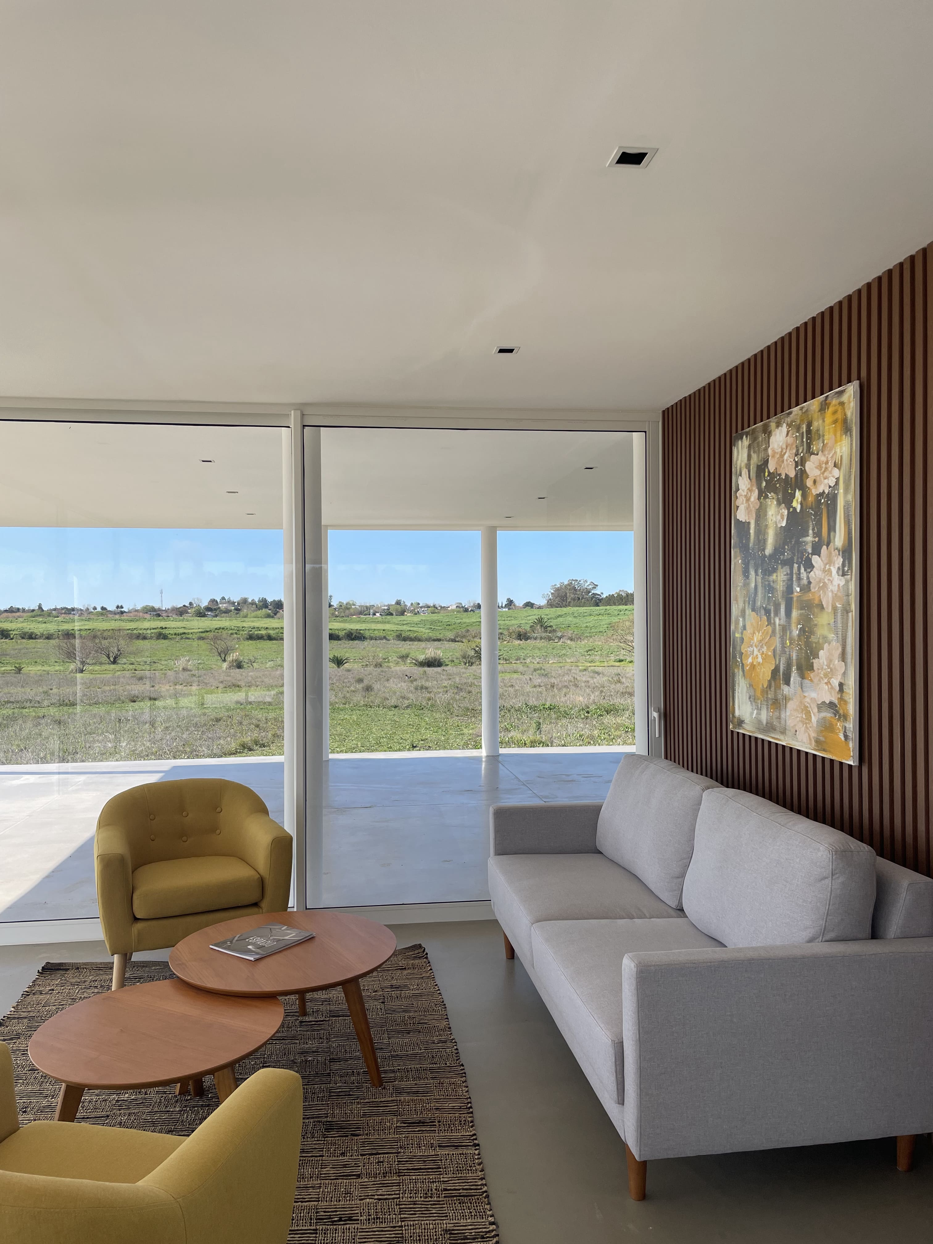 - Living de espera rodeado de naturaleza mientras transcurre la cremación